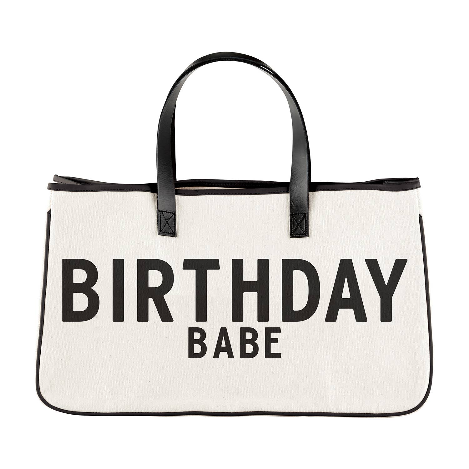 Our Birthday Babe Canvas Tote is the perfect gift. Genuine leather handles stitched to heavyweight canvas make for a clean, modern look! A convenient inside pocket allows for easy storage and a waterproof lining to protect against those darn accidental spills!