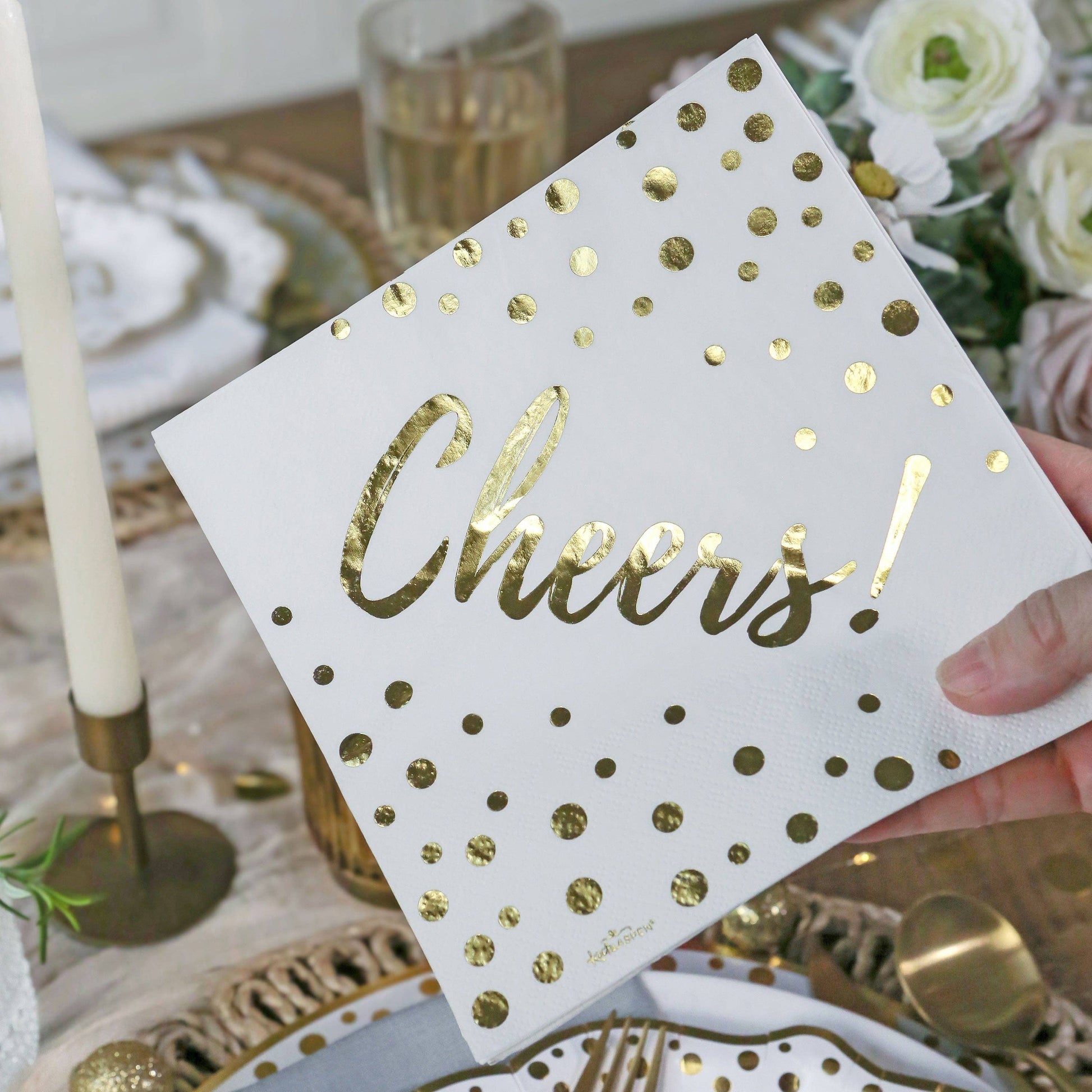 Get ready to party with our Cheers 72 Piece Party Tableware Set! This hassle-free disposable set includes everything you need for 24 guests, with premium white paper plates featuring elegant gold foil accents and a festive "Cheers!" design.