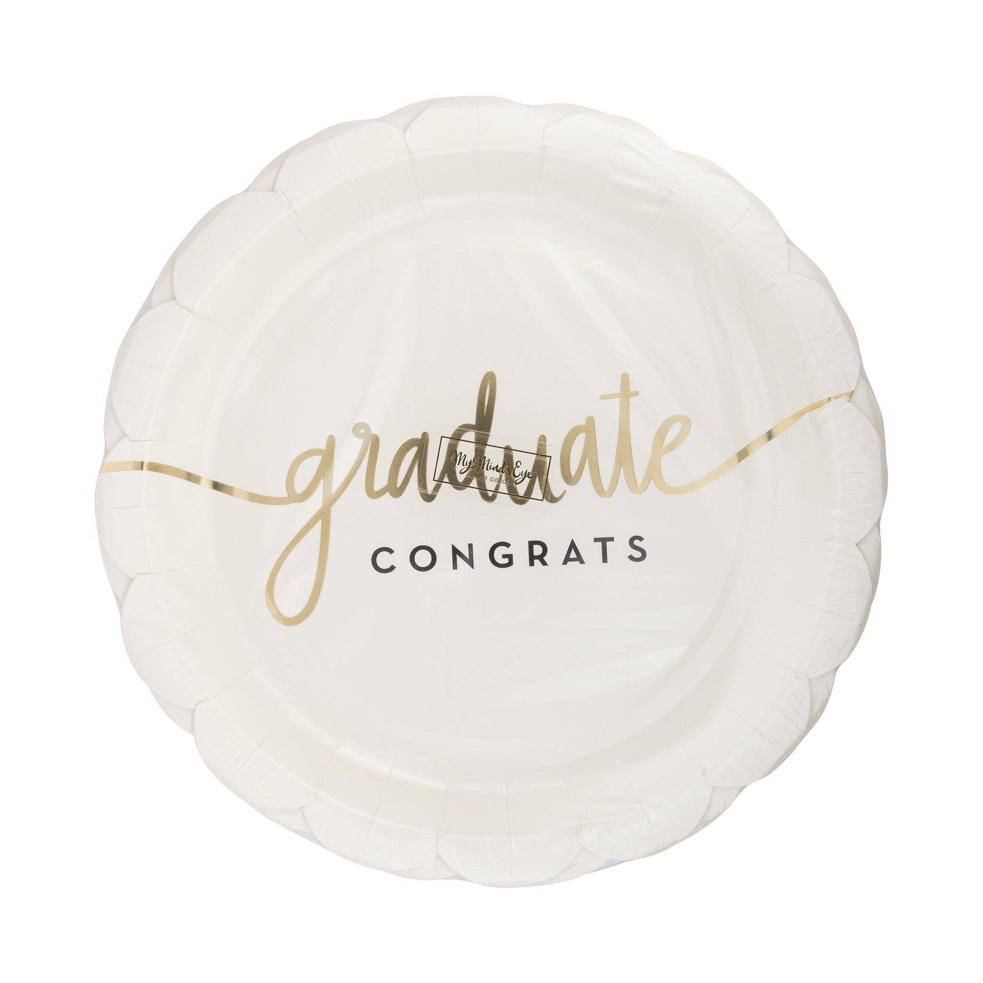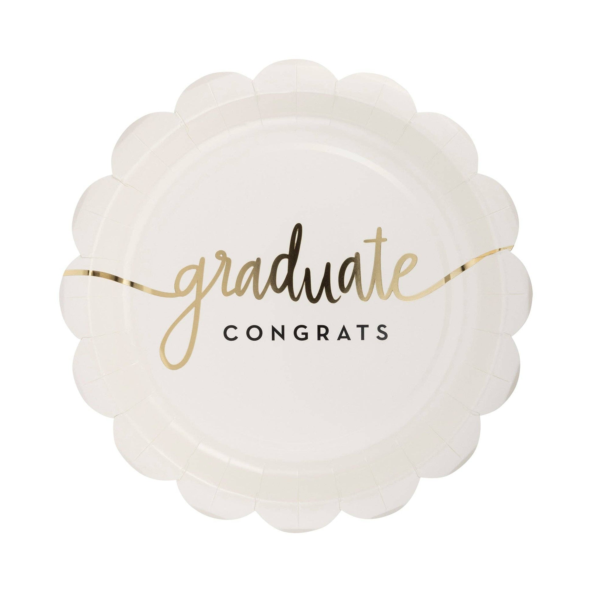 Celebrate your graduate's accomplishments with our Graduate Congrats Plate! This gold foil plate exclaims "congrats grad" in a playful and stylish way, making it the perfect addition to any graduation party. Cheers to their success!
