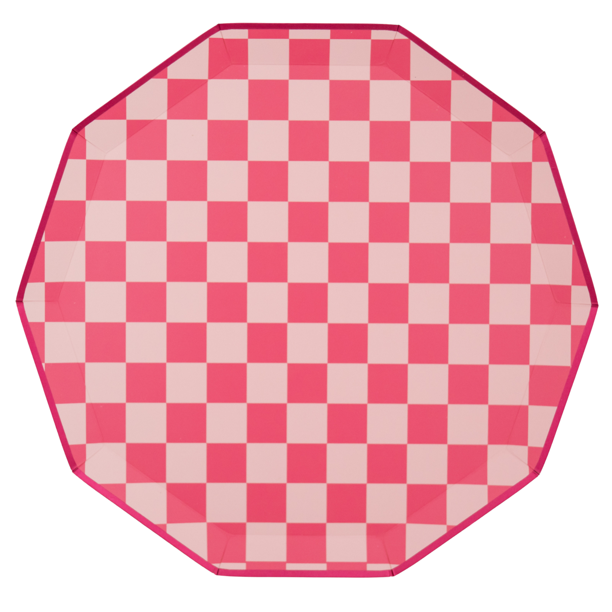 Our Pink Checkered Signature Dinner Plates by Bonjour Fête are the essential addition any party. Pair with our Haute Pink Birthday dessert plates and cups!