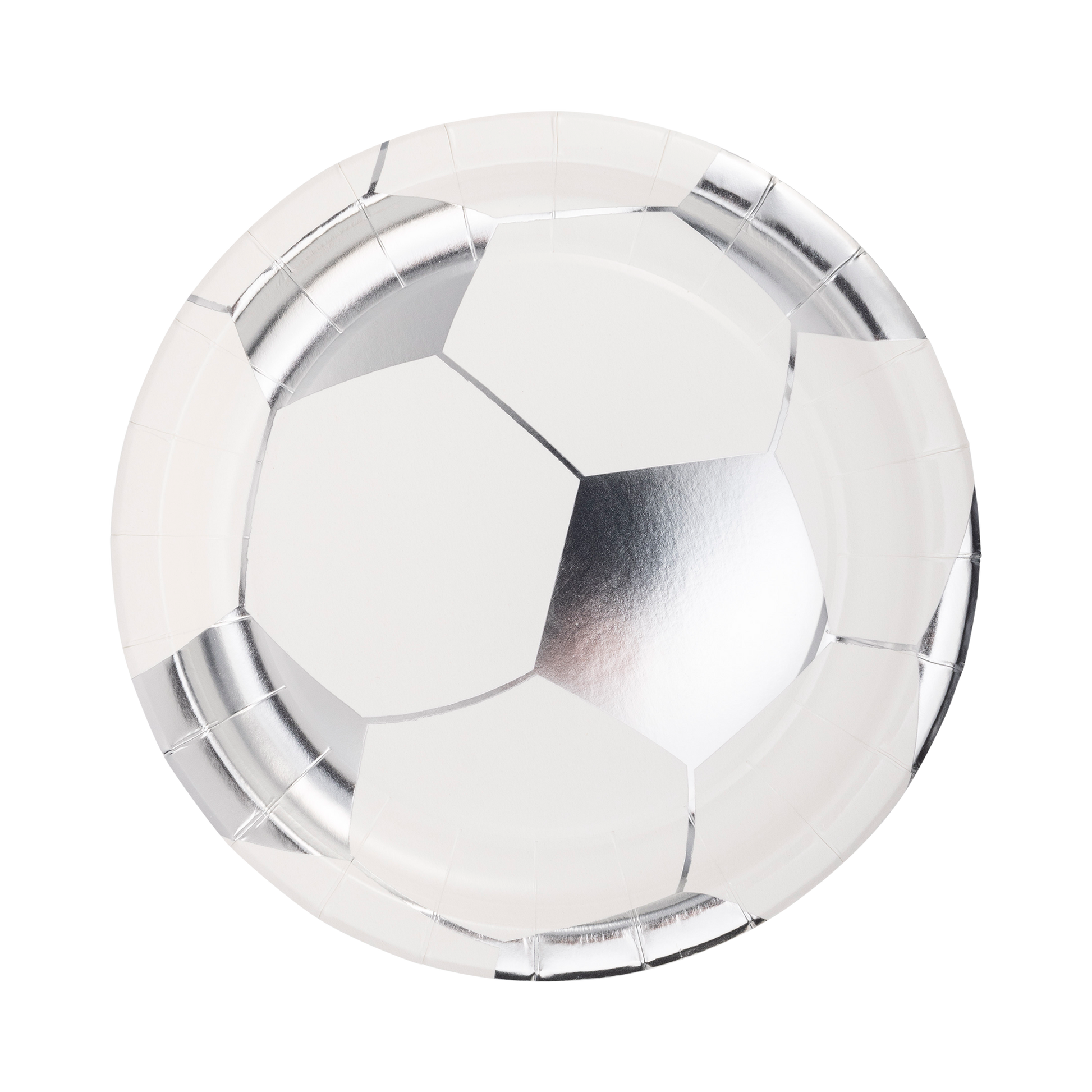 Get the party rolling with our Soccer Ball Plate! This unique plate features a playful soccer ball design with a metallic finish, perfect for any soccer-themed party or event. With its durable material and fun design, it's sure to be a hit among soccer fans. Game on!