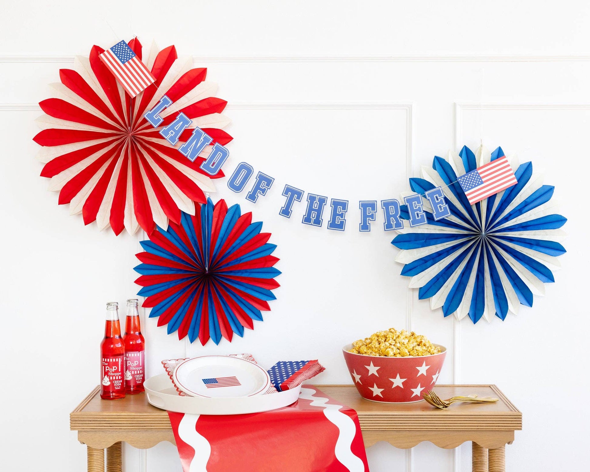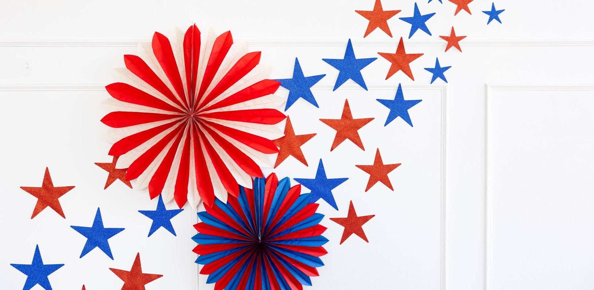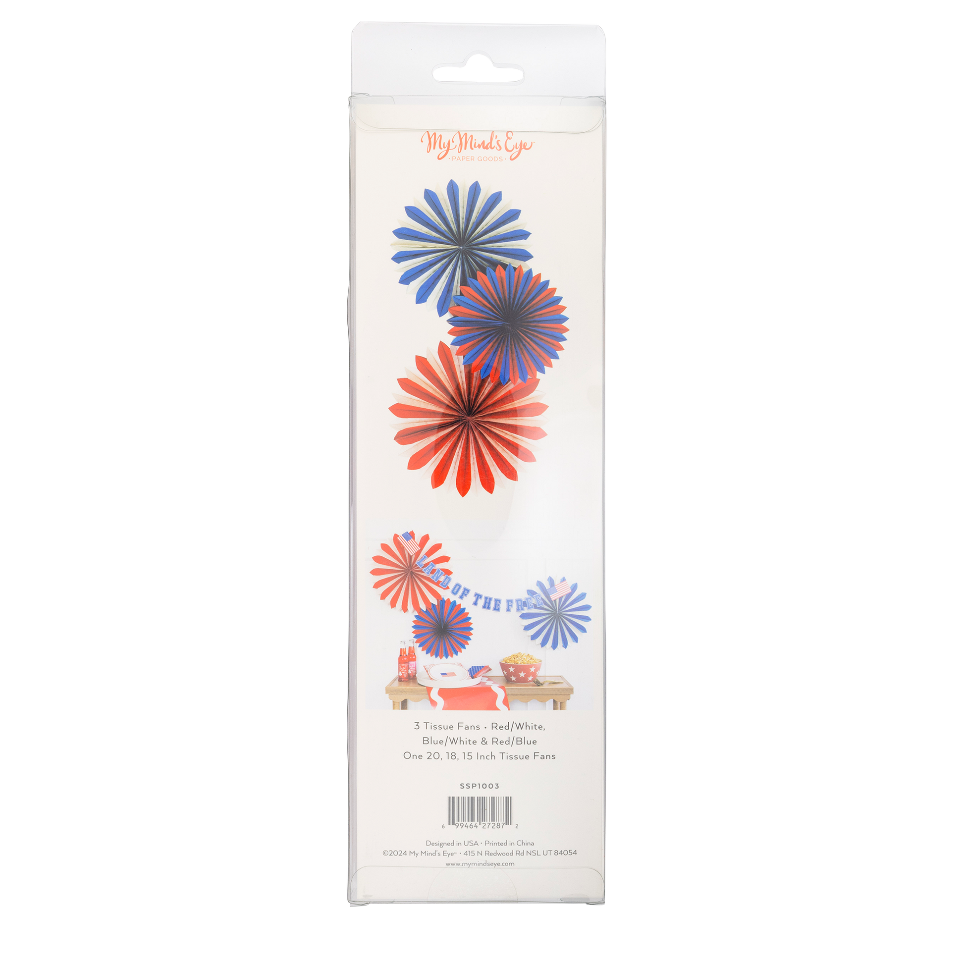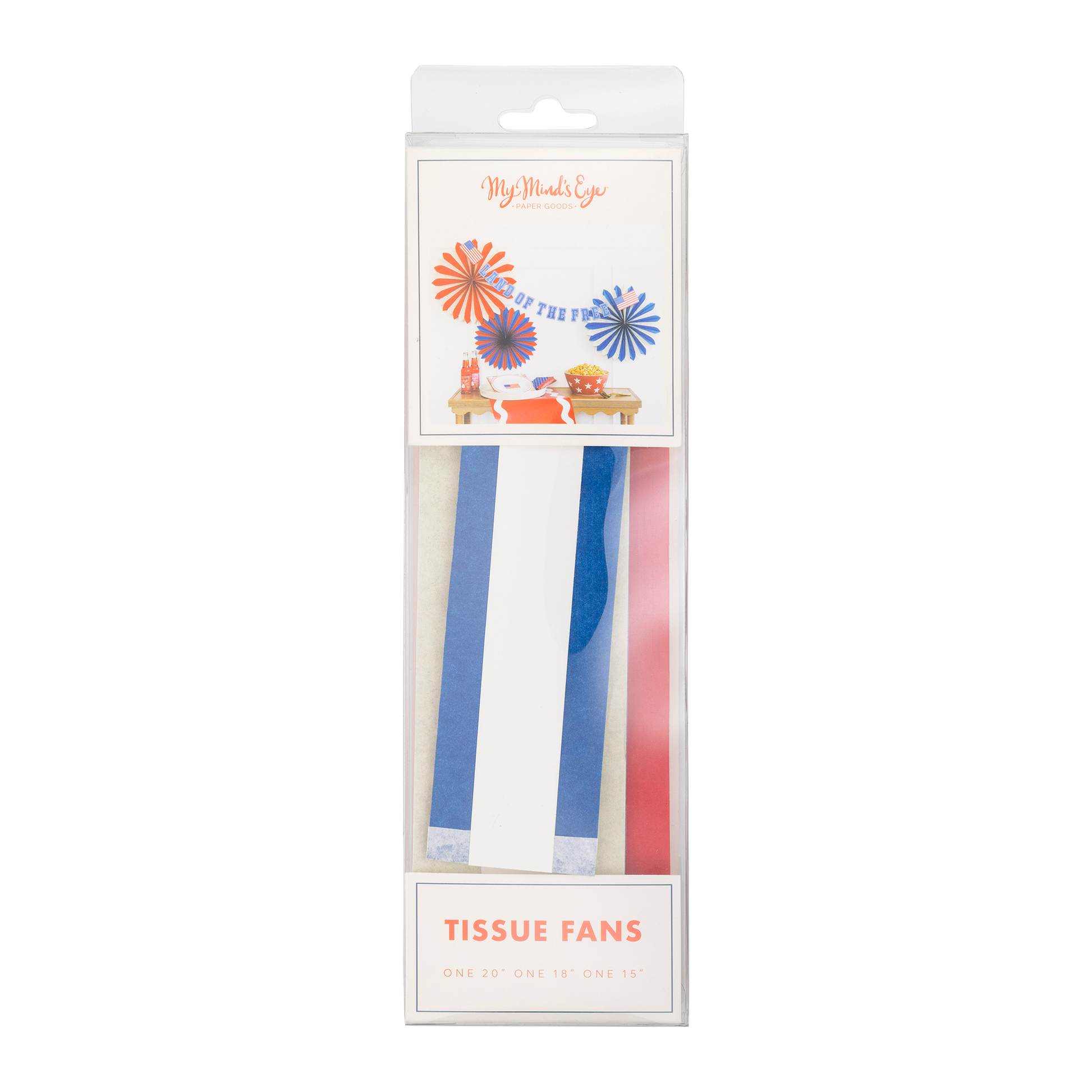 Add a pop of color to your 4th of July party with these red, white, and blue tissue fans! Perfect for any patriotic celebration, these fans are sure to create a fun and lively atmosphere. Don't miss out on these must-have party accessories! • includes 3 tissue Fans • Red, White & Blue • One 20", 18", 15" Tissue Fans