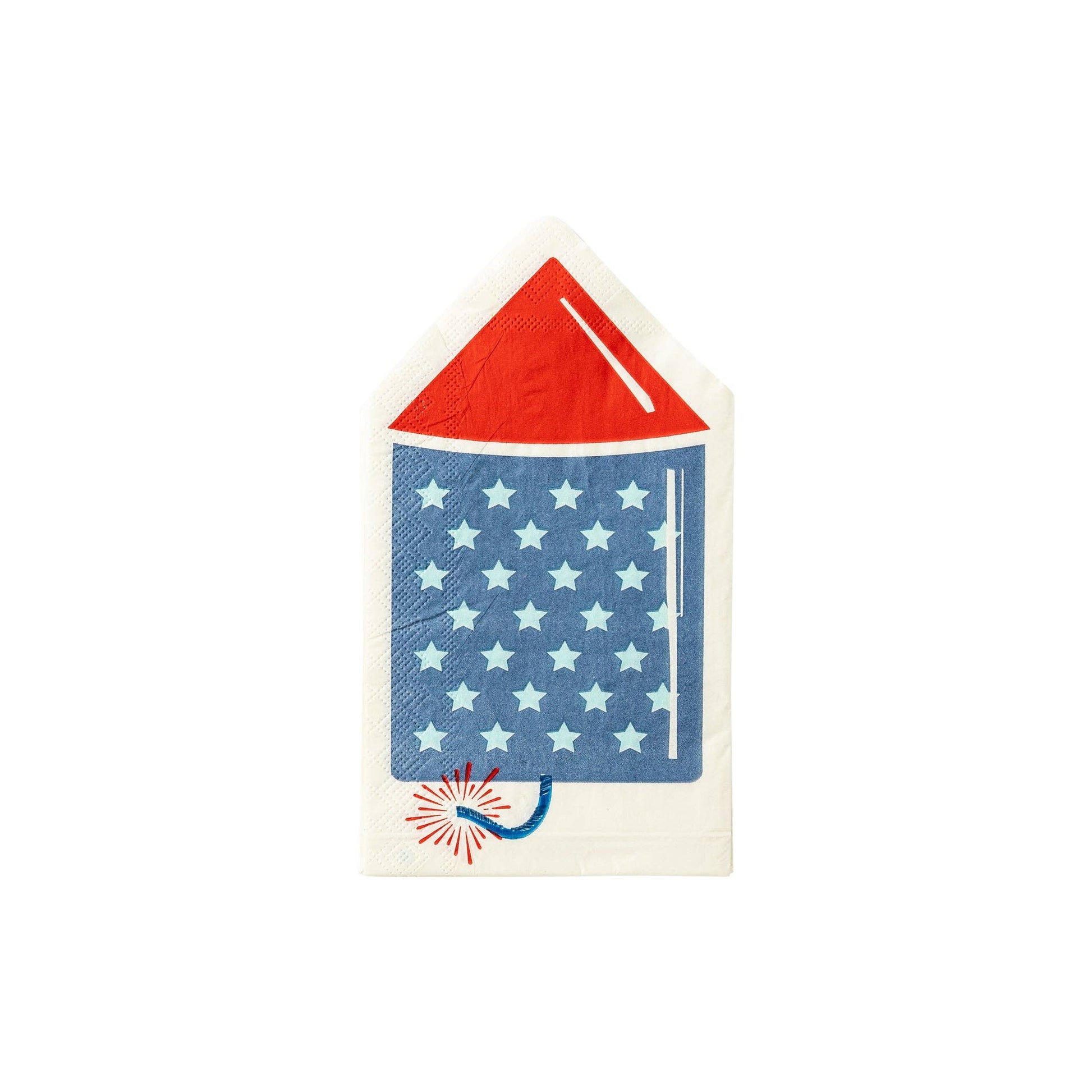 Light up the picnic table with this whimsical rocket die cut napkin. Designed to look like a festive firework, this red, white and blue die cut napkin is sure to put stars in your loved ones eyes at your backyard summer time and 4th of July celebrations. Includes 24 napkins.
